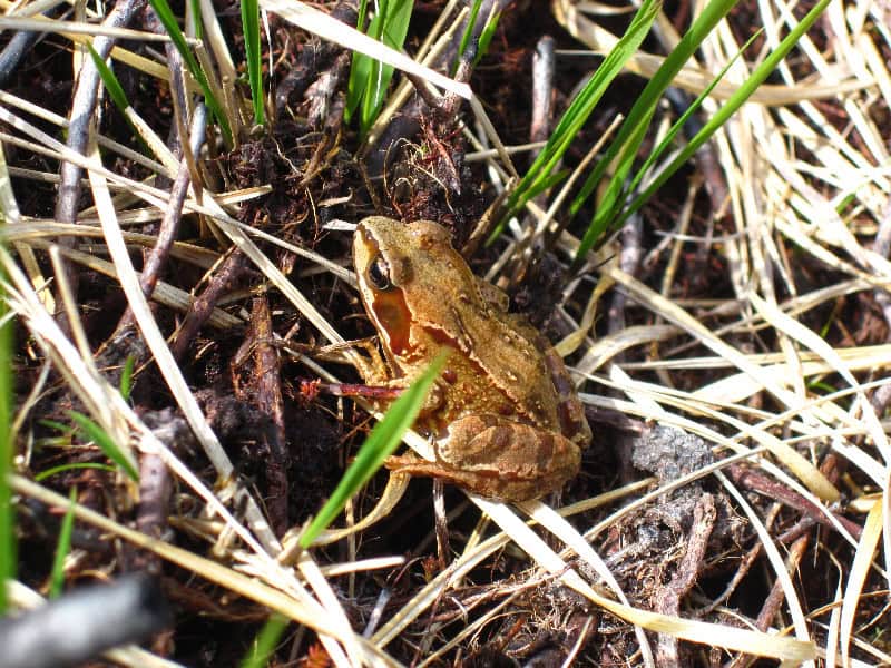 A close-up of a frog blending into its natural habitat, with detailed textures of the frog’s skin and the surrounding earthy environment perfect for nature or wildlife enthusiasts.