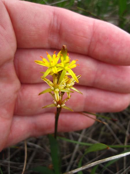 A close-up image of a yellow wildflower native to mountain and trail environments, highlighting its delicate petals and vibrant color, ideal for outdoor enthusiasts and hikers exploring nature.