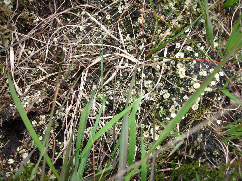 A close-up image of moss, grass, and small plants growing on rocky ground in a wilderness environment, showcasing natural flora, textures, and the ecosystem typical of hiking trails and outdoor adventures.