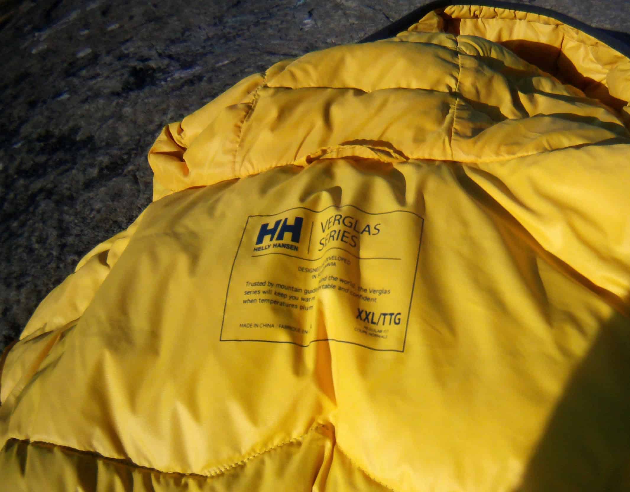 A close-up shot of an insulated, lightweight yellow sleeping bag designed with high-quality materials for durability and warmth during mountain expeditions.