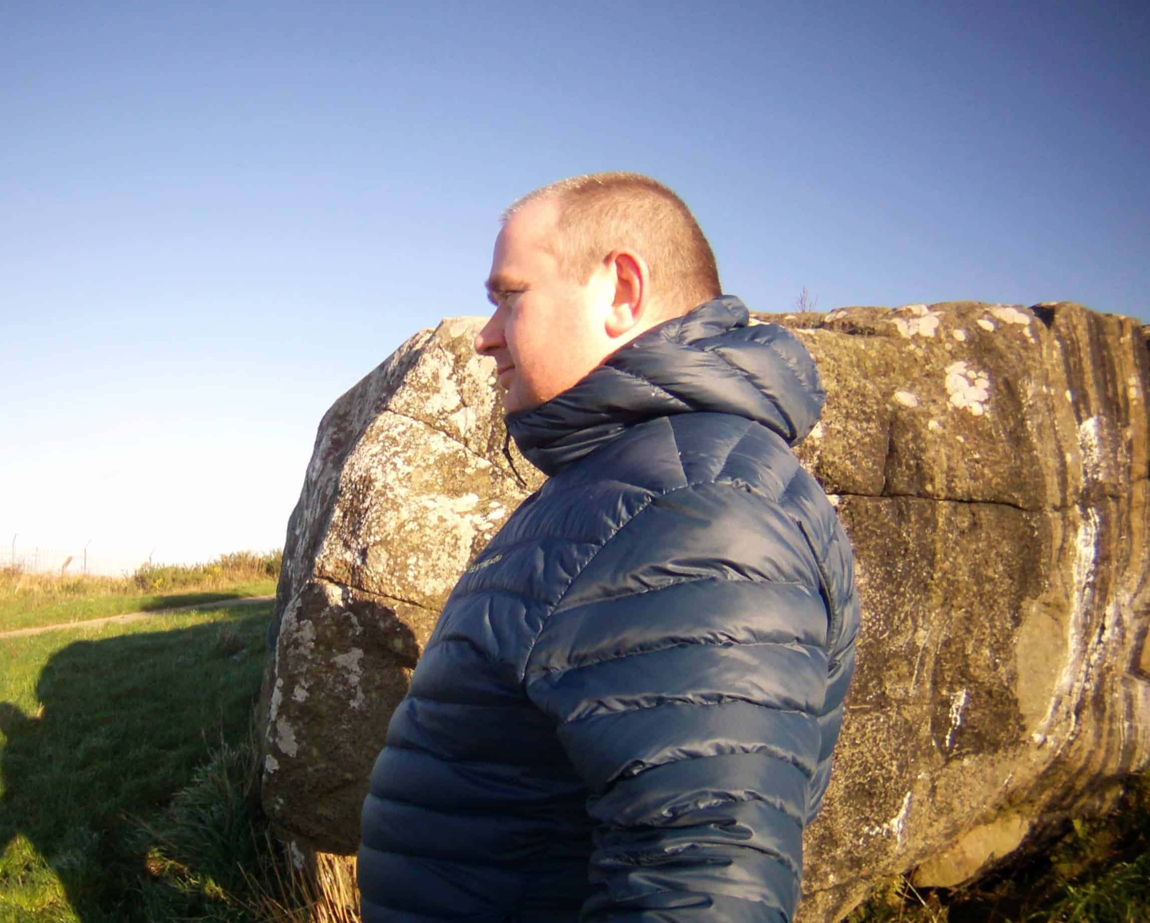 Breathtaking lakeside mountain landscape with rolling green hills and rugged terrain during daytime.