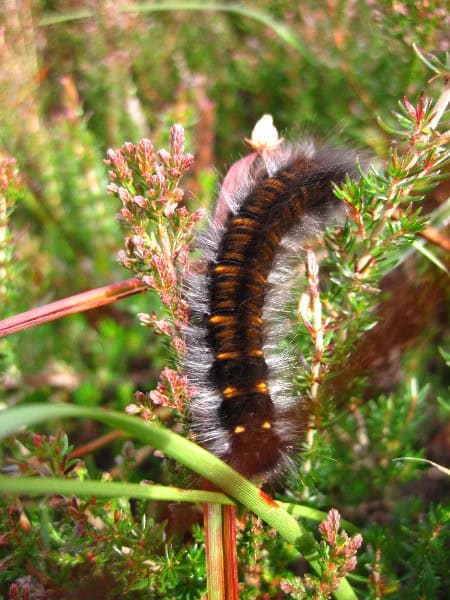 Close-up of a caterpillar on wild plants, showcasing nature’s biodiversity and the beauty of outdoor wildlife, perfect for hiking and outdoor enthusiast content.