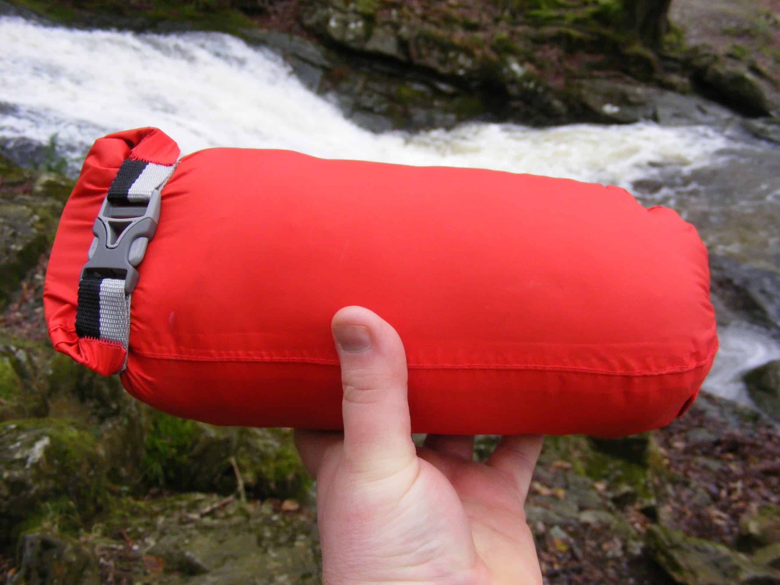 Waterproof dry sack backpack for hiking and camping in outdoor wilderness.