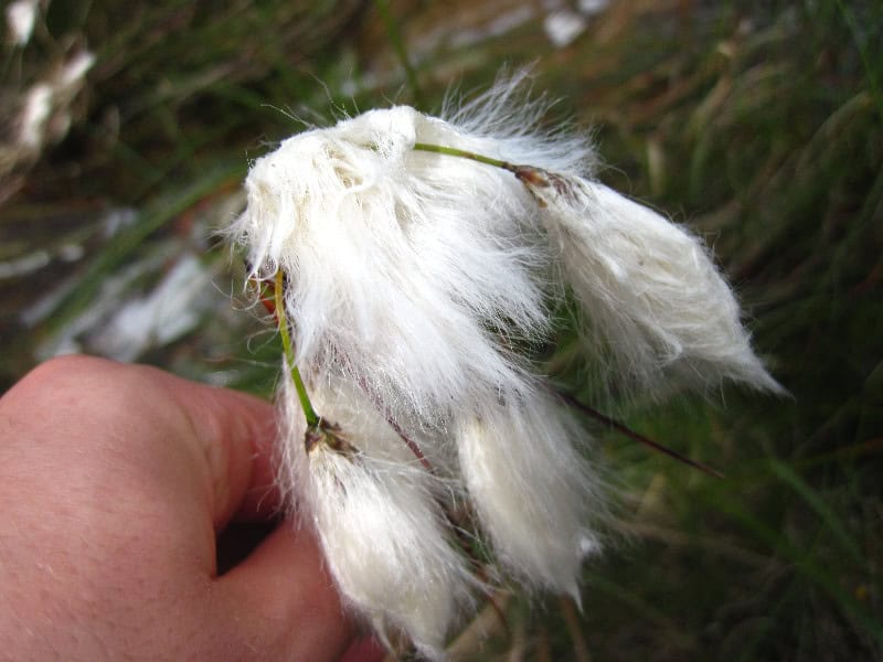 Delicate white seed fibers of a cotton-like plant being held by a person outdoors, showcasing nature’s fiber structures and plant life.