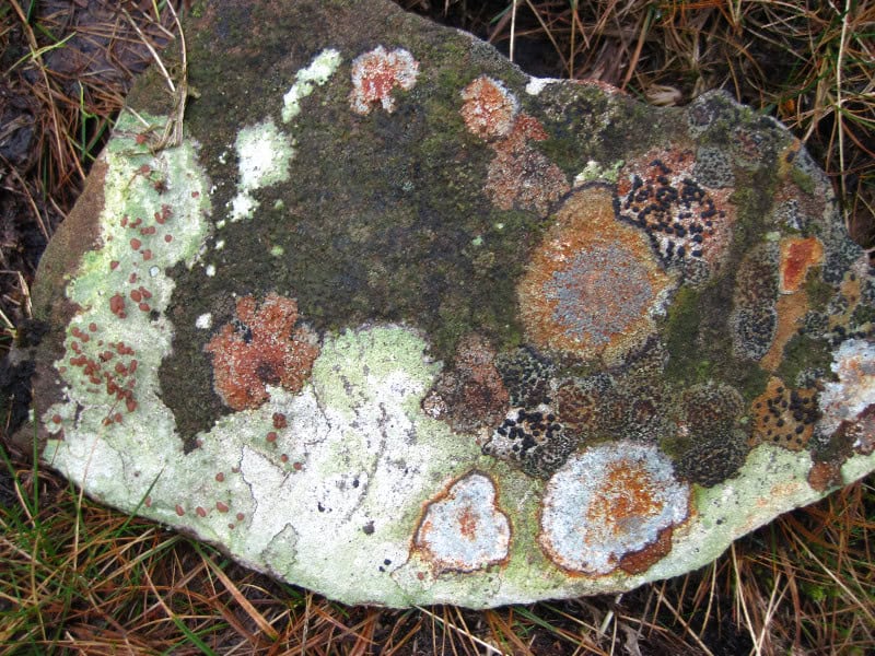 A close-up of a rock covered with various mosses and lichens, highlighting the diverse textures and colors found in forest environments, perfect for outdoor enthusiasts and nature hikers.