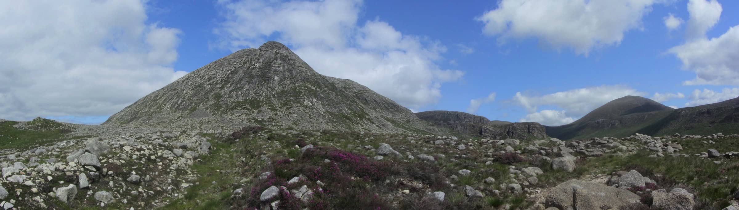 Breathtaking mountain scenery featuring large rocky slopes and lush green patches, perfect for hiking enthusiasts exploring remote and scenic trails.