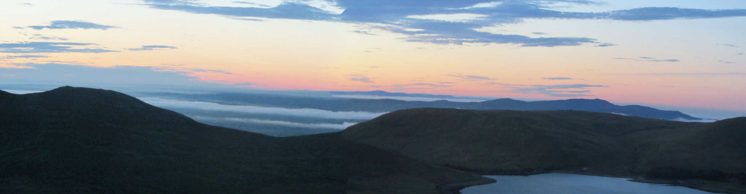 Breathtaking sunrise over hilly terrain with a peaceful lake, offering stunning scenery for hikers and nature lovers exploring the outdoors on HikersBlog.