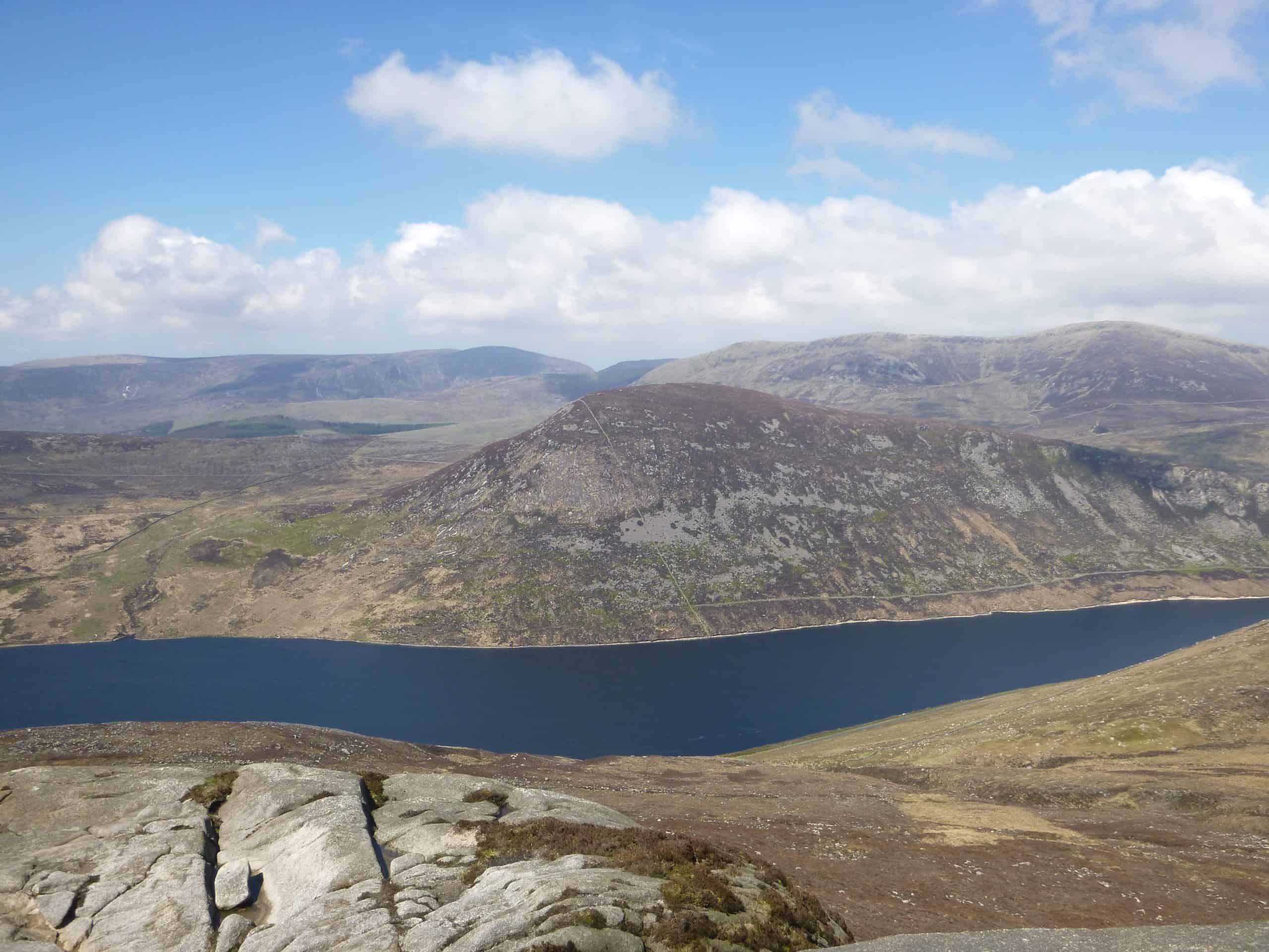 Beautiful panoramic view of remote mountains with a lake in the foreground, perfect for hiking and outdoor exploration.