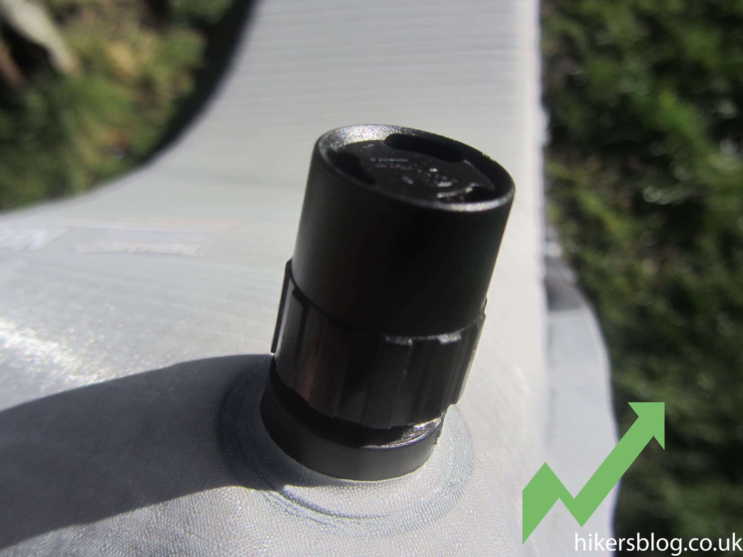 – An up-close view of a valve cap used on outdoor gear, highlighting camping equipment for hiking and outdoor adventures.