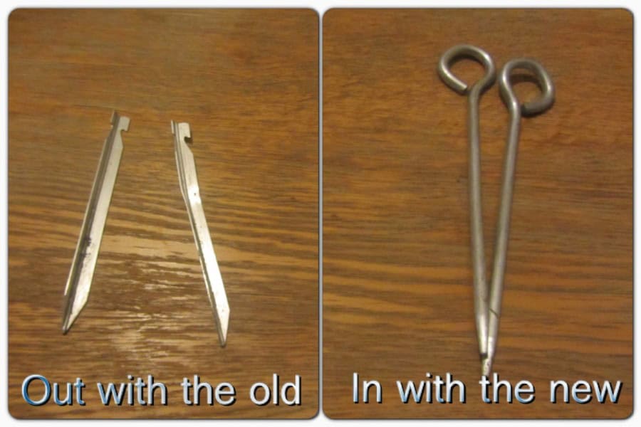 Replacement tent peg and wire hook for outdoor camping, showcasing upgraded outdoor gear for better tent stability and secure tent pitching.